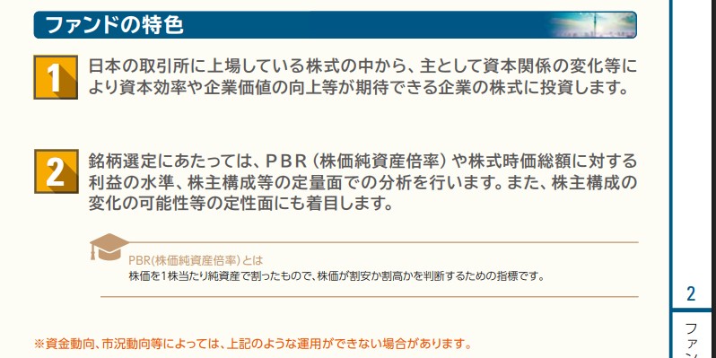 最近、東証の要請などで「資本効率」「PBR1倍割れ改善」という言葉をよくニュースで耳にします。このファンドはそういった銘柄に投資するものですか?