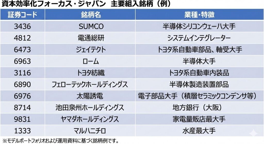 • 資本効率化フォーカス・ジャパンの組入銘柄