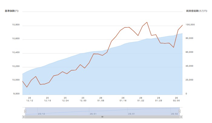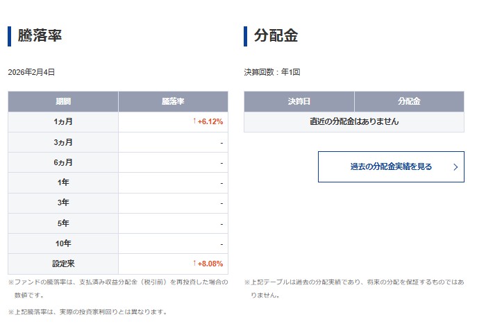 直近1か月の騰落率は+6.12%、設定来では+8.08%となっています。