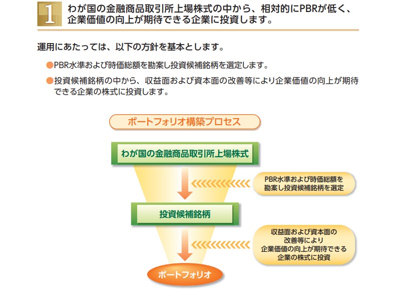 日本企業のPBR是正や資本効率改善といった構造変化を狙うテーマ型運用であり、指数連動型とは異なる値動きになる点には注意が必要です。