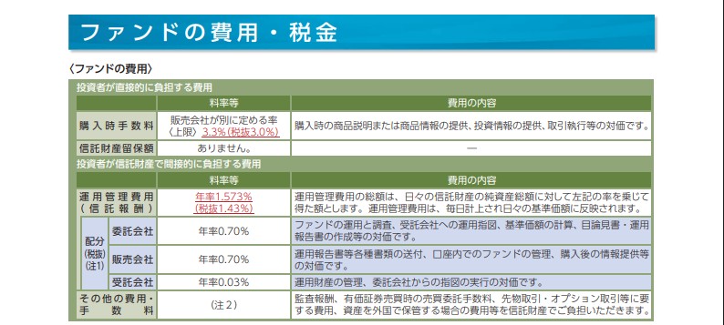 信託報酬は、委託会社0.70%、販売会社0.70%、受託会社0.03%と、運用・販売・管理にバランスよく配分されています。