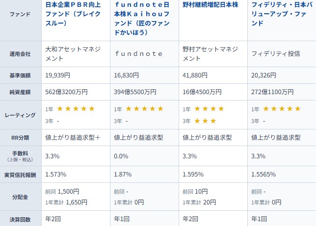PBR改善というテーマに基づき銘柄選別を行う以上、一定のコストを支払って運用判断を任せる商品と理解したうえで検討する必要があるでしょう。