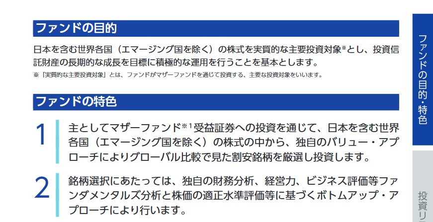 日本を含む先進国を対象に、プロの目利きで本質的価値を見極める積極的な運用が特徴です。