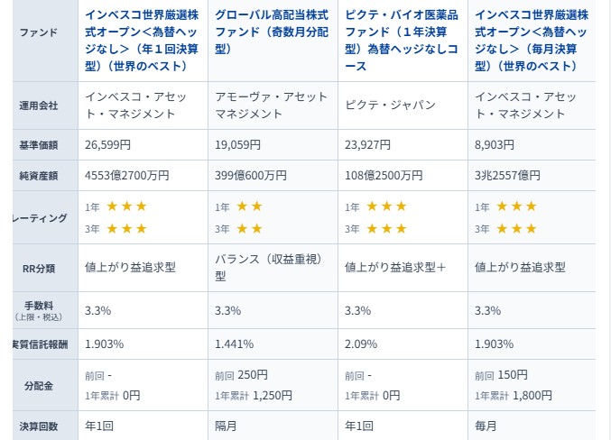 - インベスコ世界厳選株式(年1回決算型)の類似銘柄との比較
