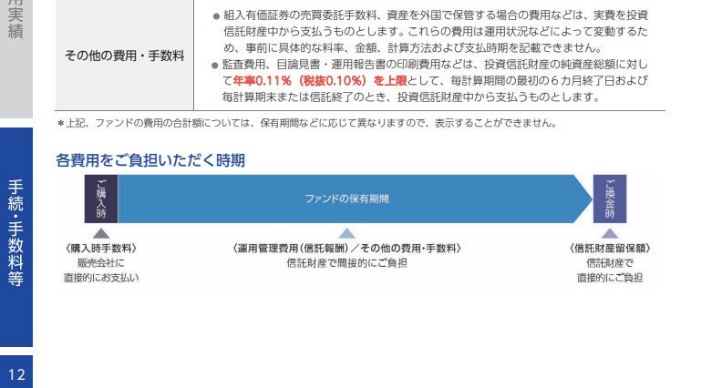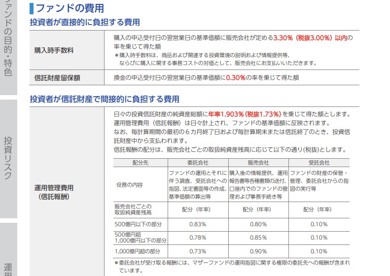 運用中も年率1.903%の信託報酬に加え、諸経費として上限0.11%が別途発生します。