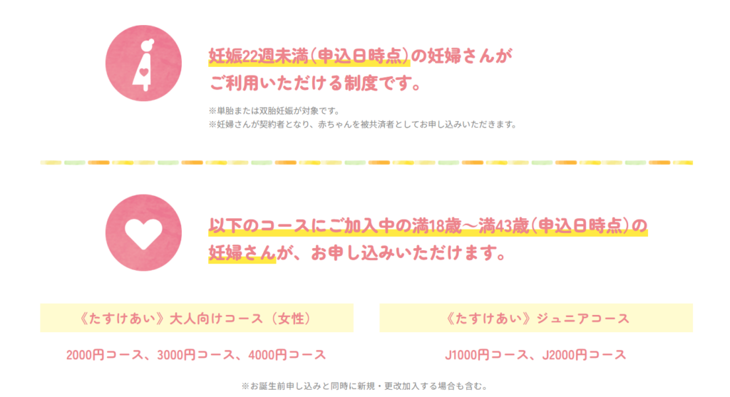 - たすけあいお誕生前申し込みは妊娠中に加入できる