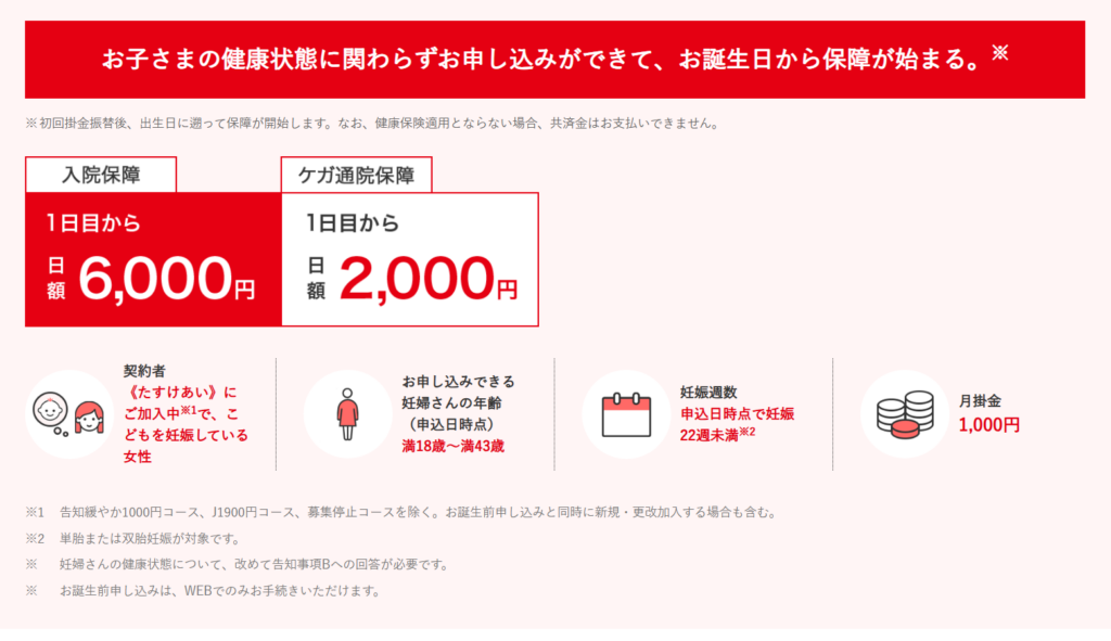 - たすけあいJ1000円コースお誕生前申し込みとは