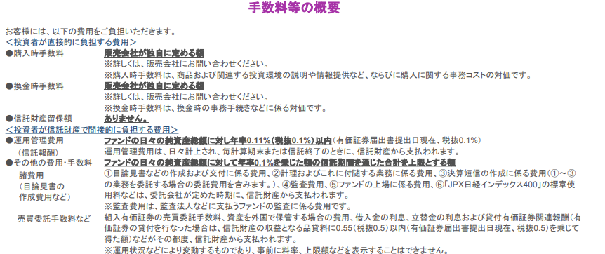 毎年の管理費用は年0.11%程度、その他手数料もかかります。