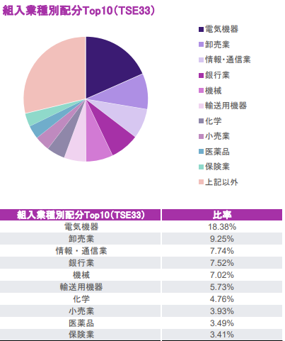 最近はAI関連がトレンドになっていますが、関連する電気機器の業種が組み入れ順位では1位になっています。