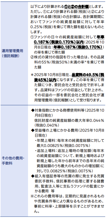 毎年の管理費用は年0.187%程度、その他手数料もかかります。