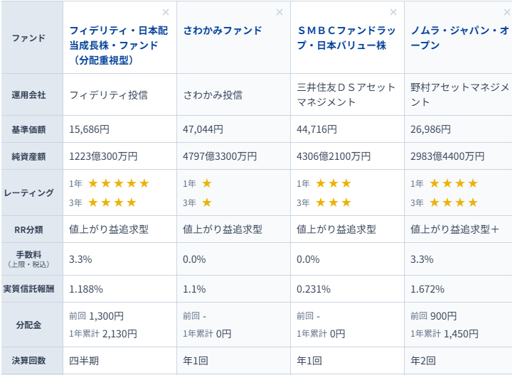 • フィデリティ・日本配当成長株・ファンド(分配重視型)の他のファンドとの比較