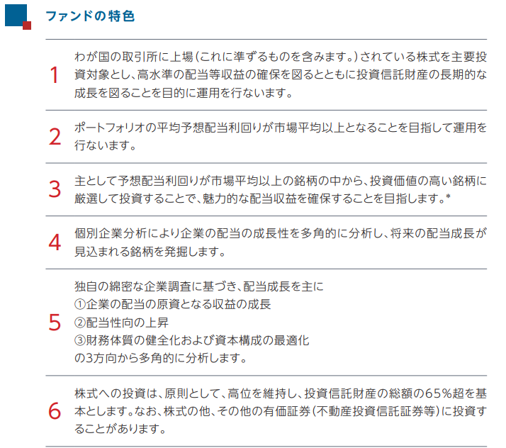 単なる高配当銘柄ではなく、配当を増やす「成長力」がある企業を厳選しているのが特徴です。運用方針や組入銘柄など解説していきますので一緒に勉強しましょう。