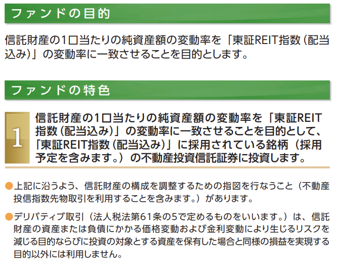 インデックスなので指数連動となり、対象インデックスは東証REIT指数(配当込み)の値動きに連動となります。