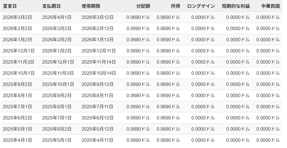 株式・債券・デリバティブ等の複合戦略により、毎月0.0690ドルという安定した分配をキープしながら、資産全体の力強い成長も同時に狙えるのがPGPの強みです。