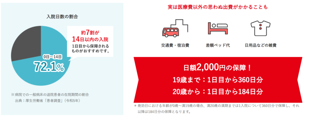 【特徴2】入院1日目から日額2,000円保障