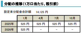 直近1年で+43.05%、3年で+123.56%の騰落率になります。年4回分配金も出ています。