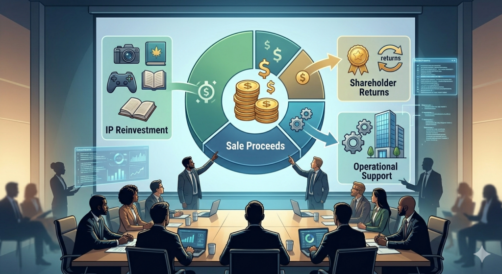 ただし、成否を分けるのは売却そのものではない。売却後に何へ投資し、どのようにIPを生み出し、どこで収益化するのか。その実行力である。