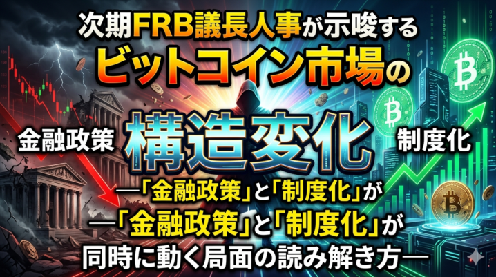 ビットコインはもはや独立した資産ではなく、グローバル金融の中核と連動する存在となっている。したがって、FRB議長人事は単なる政治イベントではなく、市場構造そのものを左右する重要なシグナルとして捉える必要がある。