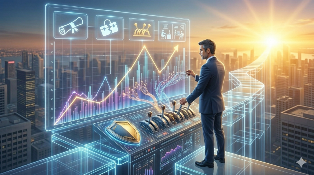生涯年収を決定づける最大の要因は、単なる年収水準ではなく「収入の構造」である。学歴・資格に依存する人は、多くの場合、労働収入に依存したキャリアを歩む。これは安定性がある一方で、時間と労働量に収入が強く連動するため、大きな跳躍が起こりにくい。これに対し、学び続ける人は、マネジメント、投資、事業開発など、レバレッジの効いた領域に移行しやすい。つまり、「自分が働く」から「人・資本・仕組みを動かす」側に回ることで、収入の上限が大きく引き上げられる。この構造転換が起きるかどうかが、最終的な生涯年収に決定的な差を生む。