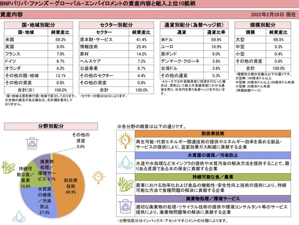 新興国を含む世界各国の金融商品取引所に上場している環境関連企業の株式を実質的な主要投資対象とします。投資対象とする外国投資法人の円建ての外国投資証券はBNPパリバ・ファンズ-グローバル・エンバイロメント-I Plus JPYとなります。