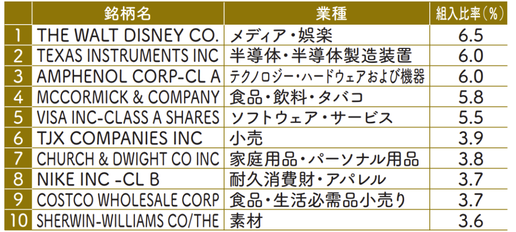 FAANG銘柄が入っていないのも印象的ですね。このあたりはコンセプトに沿わない企業群なのでしょう。