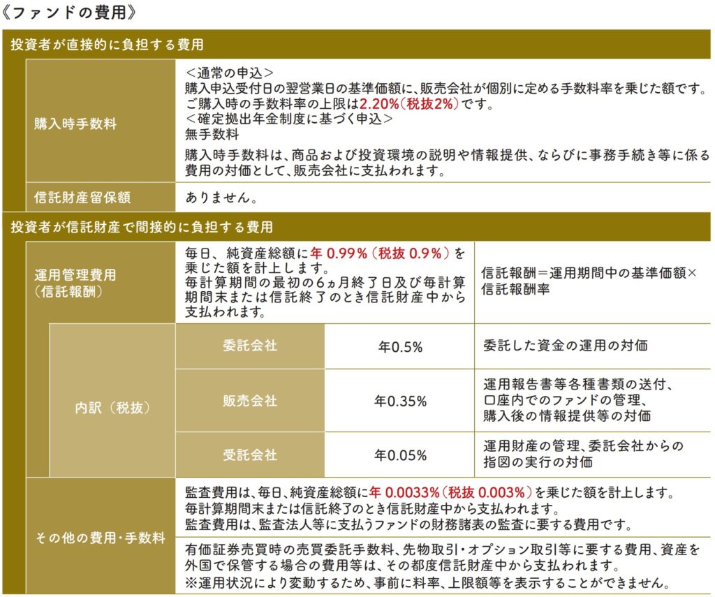 購入する際には2.2%の購入手数料、毎年の管理費用は0.99%、その他手数料0.0033%となります。