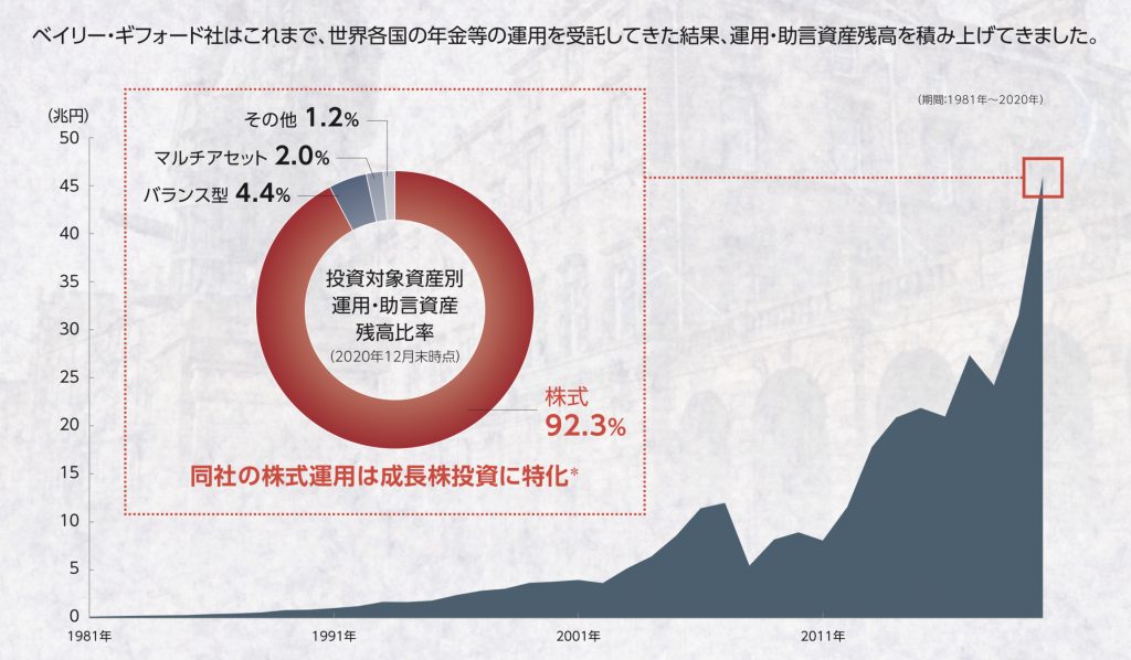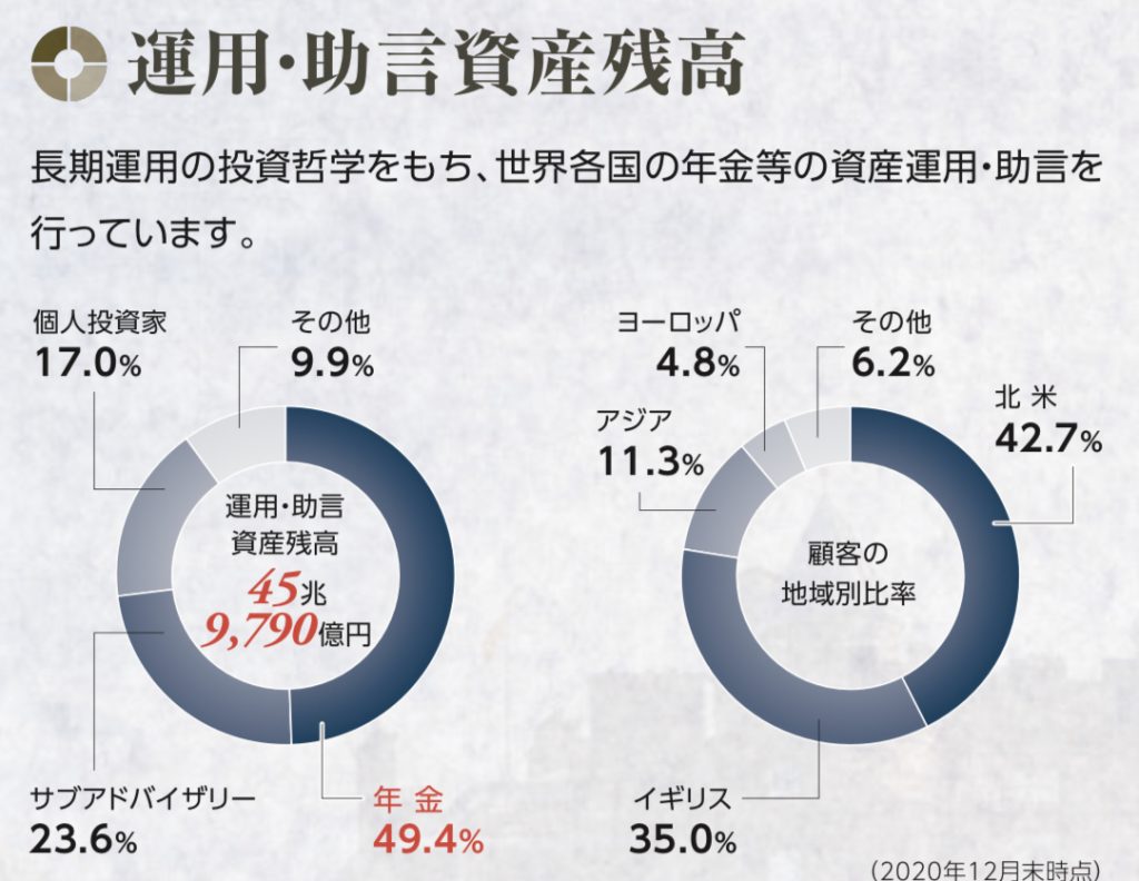 エジンバラにあるファンド会社で、資産残高がなんと約46兆円。欧米を中心に世界中の年金基金(機関投資家)から資金を集めていることから、運用テーマと投資先選定の仕方が社会に受け入れられやすいことがわかります。長期投資に向いているとも言えます。