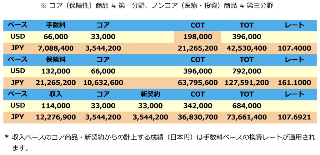 ・コア(保障性)商品の要件は入会基準、COT&TOTいずれも同じです。収入ベースの場合は新契約も含まれます。
