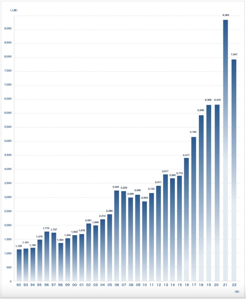 先程もお伝えしたように、コロナ後に基準が2/3くらいになったので会員数が1.5倍に増えていますね。2022年も同じくらいの基準ですが何故か減少しています。