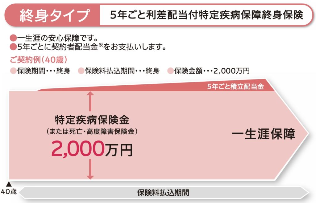 正式名称:5年ごと利差配当付特定疾病保障終身保険/無配当特定疾病保障定期保険