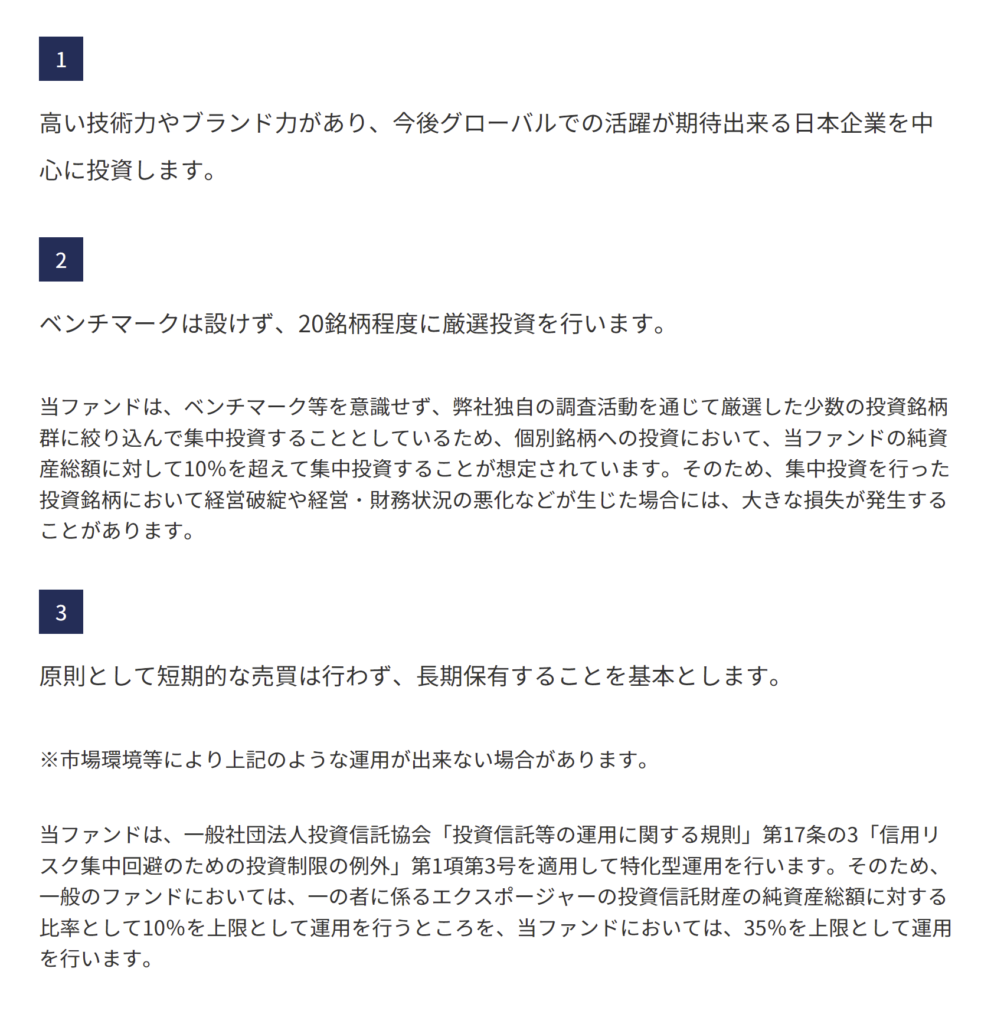 自社調査で厳選した日本株に集中、長期投資する運用スタンスですね。