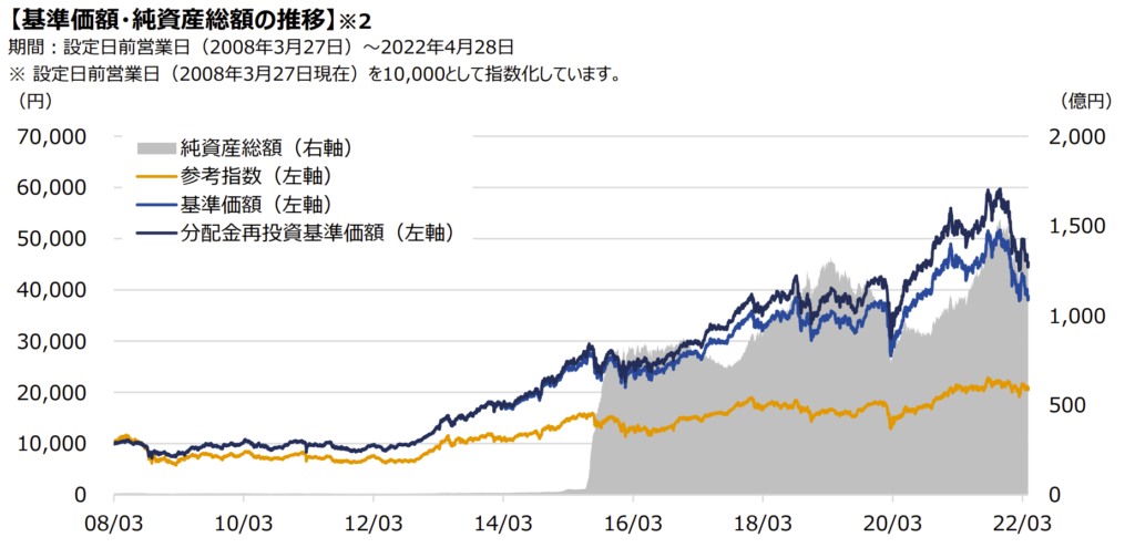パフォーマンスが悪い年も分配されますので、その分基準価格の押し下げ要因になります。