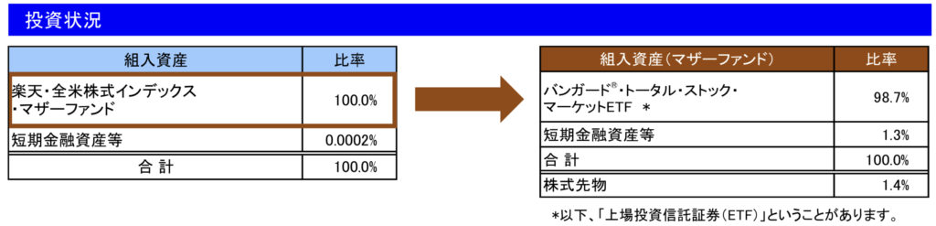 このベンチマークであるインデックはバンガード社のCRSP USトータル・マーケット・インデックスで、ここから上記1.3%の短期金融資産と信託報酬などのコスト分がマイナスに働いています。