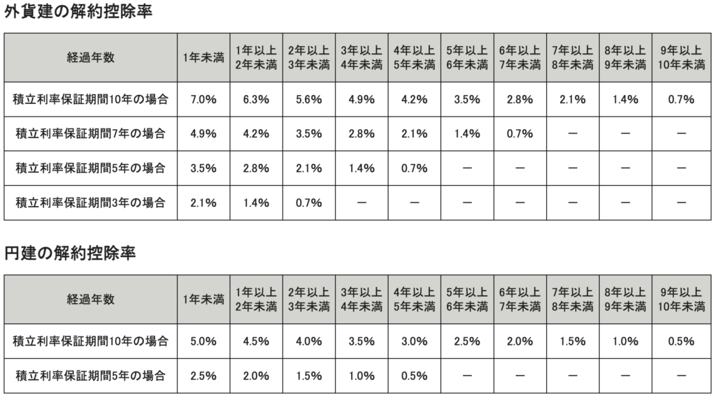 解約控除率:10年以内に解約や減額をする場合に掛かる費用