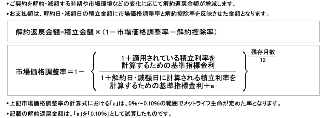 市場価格調整率:15年毎の積立利率計算基準日以外に解約や減額をする場合に掛かる費用
