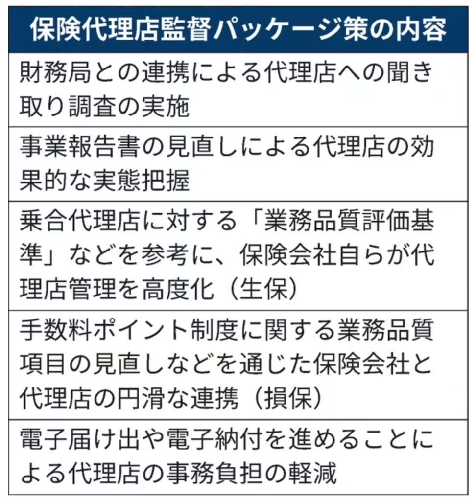 金融庁はかねて代理店の業務管理体制に問題意識を持っていたが、代理店の数が非常に多く、監視の目が行き届かなかった。「地方に所在する財務局も地銀や信金・信組との対話の機会はあるものの、保険代理店への聞き取り調査はほとんどできていなかった」(金融庁幹部)という。