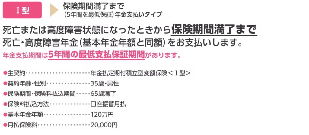- Ⅰ型 基本年金年額 × 保険期間満了まで(5年間は最低保証)