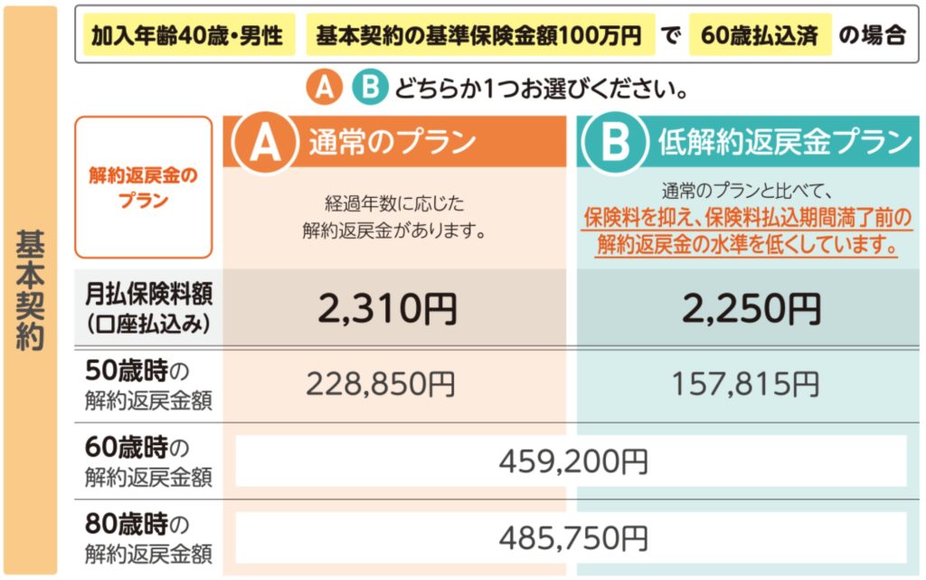 解約返戻金タイプ:通常プラン、低解約返戻金