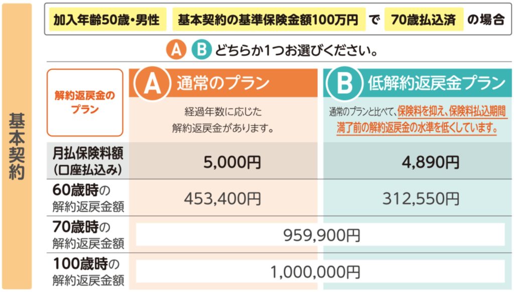 解約返戻金タイプ:通常プラン、低解約返戻金プラン