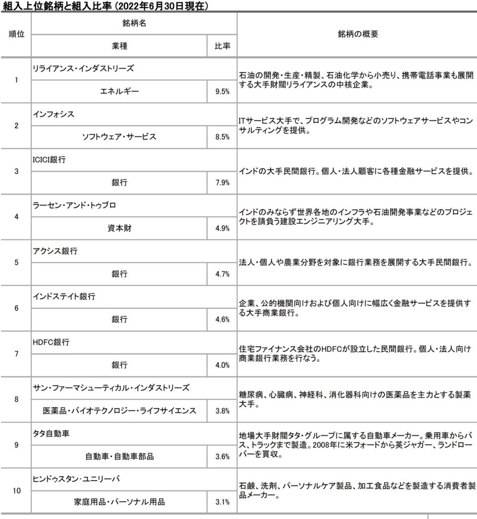 投資先、組み入れ銘柄