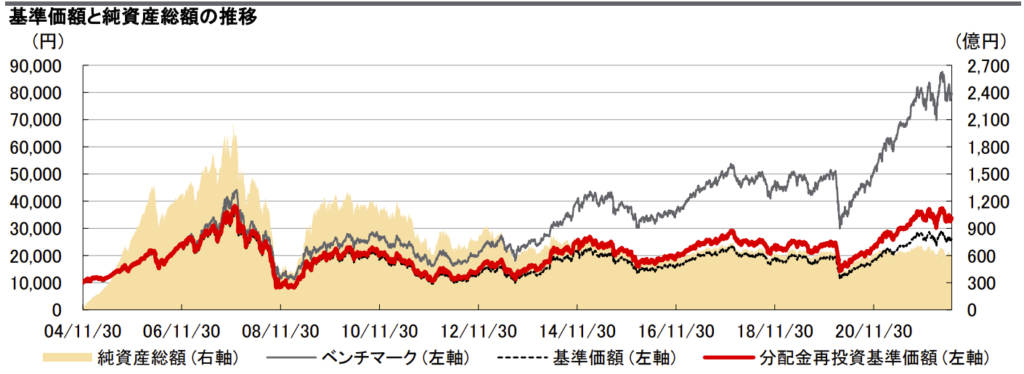 明確にベンチマークに負けていますね。購入手数料も管理費も高いです。