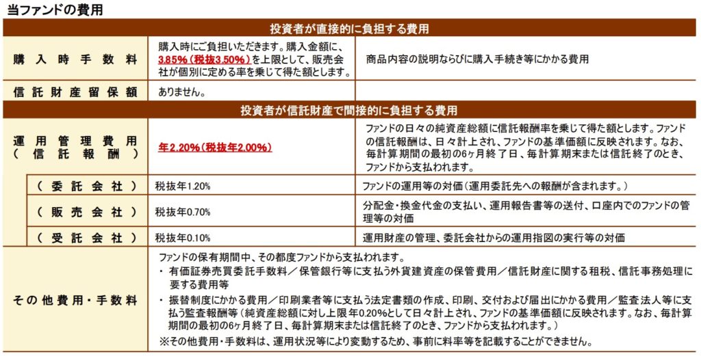 購入する際には3.85%の購入手数料、毎年の管理費用は2.2%程度、その他費用として0.2%程度かかります。