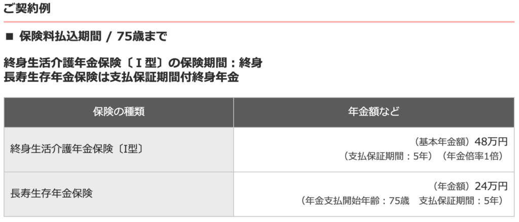 正式名称:終身介護年金保険(Ⅰ型)+ 長寿生存年金保険