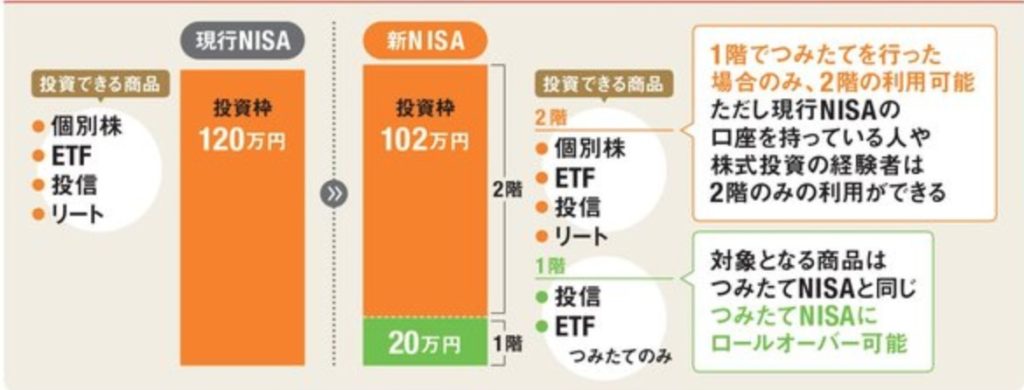 ※原則として、2階の非課税枠を利用するためには1階での積立投資を行う必要がある(2023年までにNISA口座を開いている方や投資経験者の場合は、1階部分を利用せず、2階部分のみを利用することも可能)。