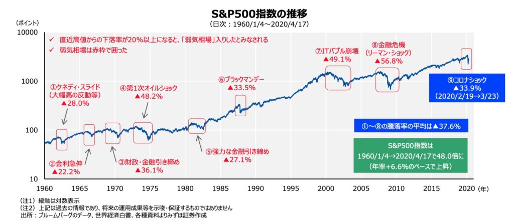 仮に、S&P500指数で年率リターン8.35%で運用できたとしても、あくまでもリスクの高い株式で運用しているわけですから、運用成績が良い期間もあれば、悪い期間もあります。
