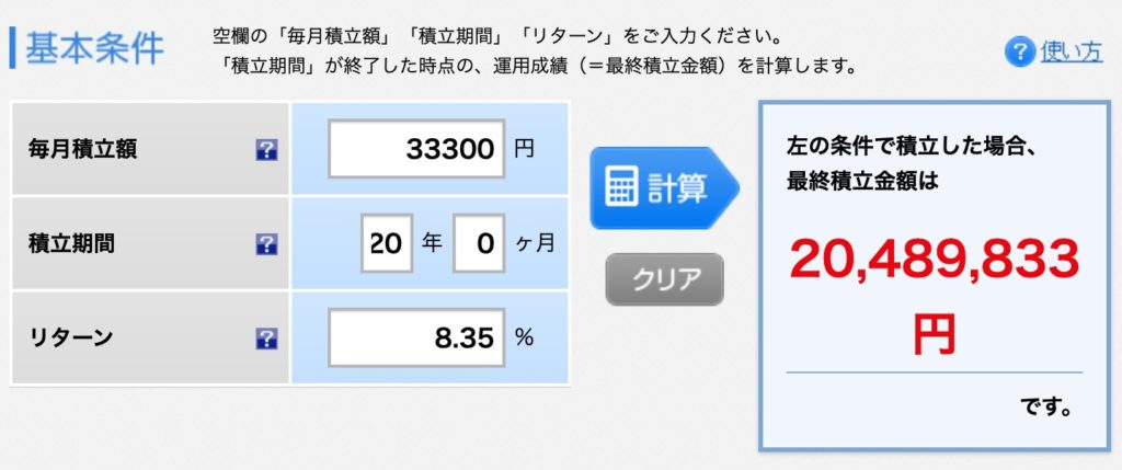 しかも、シュミレーション上で約2,050万円になるのは、毎月3万3,300円の積立を20年間、停止することなく続けることができた方であり、且つ、S&P500指数という米国株式指数で運用を続けた方ですから、途中で積立をSTOPしてしまった方や、バランス型の投資信託などで運用している方は、この限りではないことは理解しておく必要があります。