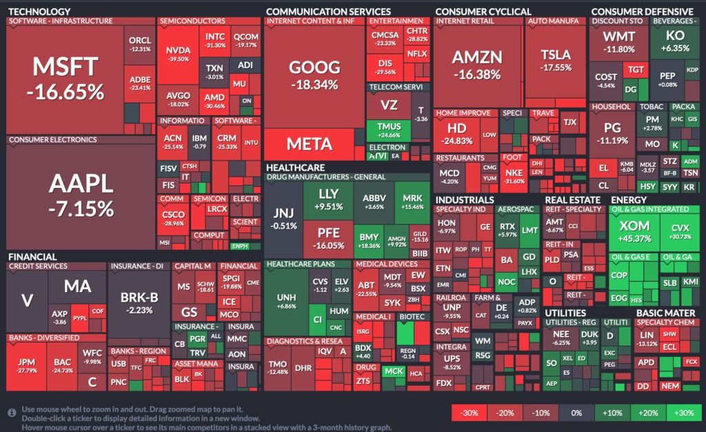 忘れていけないのは、S&P500株価指数が年初来リターンが-13.69%で収まっているのは、エネルギーセクターが牽引してきたから。