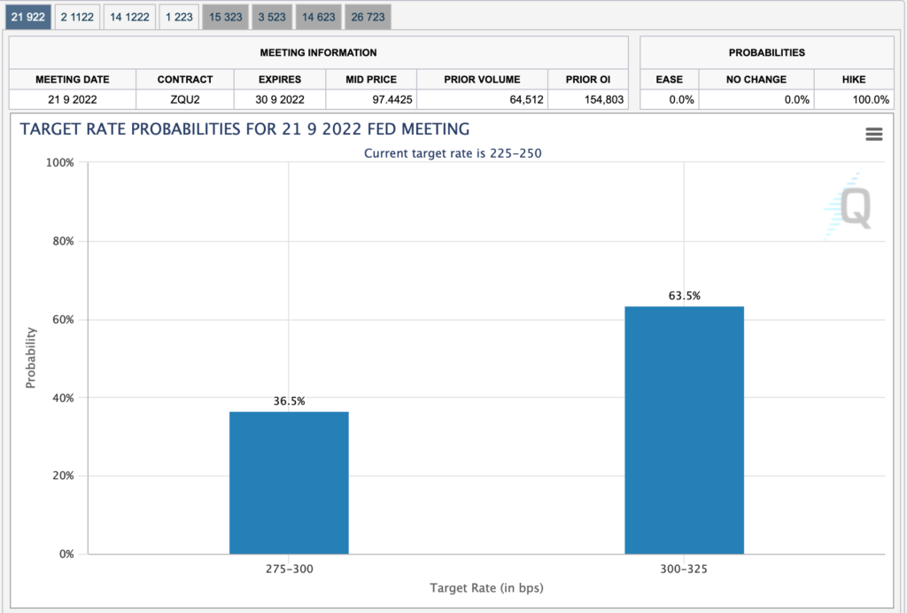 雇用統計が発表される前は、9月のFOMCでは0.5%の利上げがされるとの見方が多かったですが、発表後には0.75%の利上げになるとの見方が強まっています。