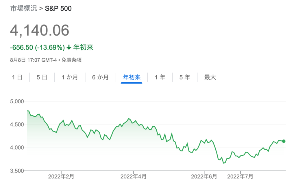 8日の米株式市場ではS&P500株価指数が3営業日連続で続落し、年初来リターンでは-13.69%となっております。