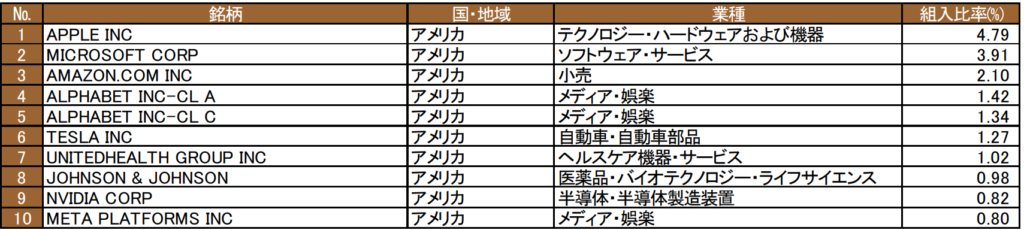 投資先、組み入れ銘柄
